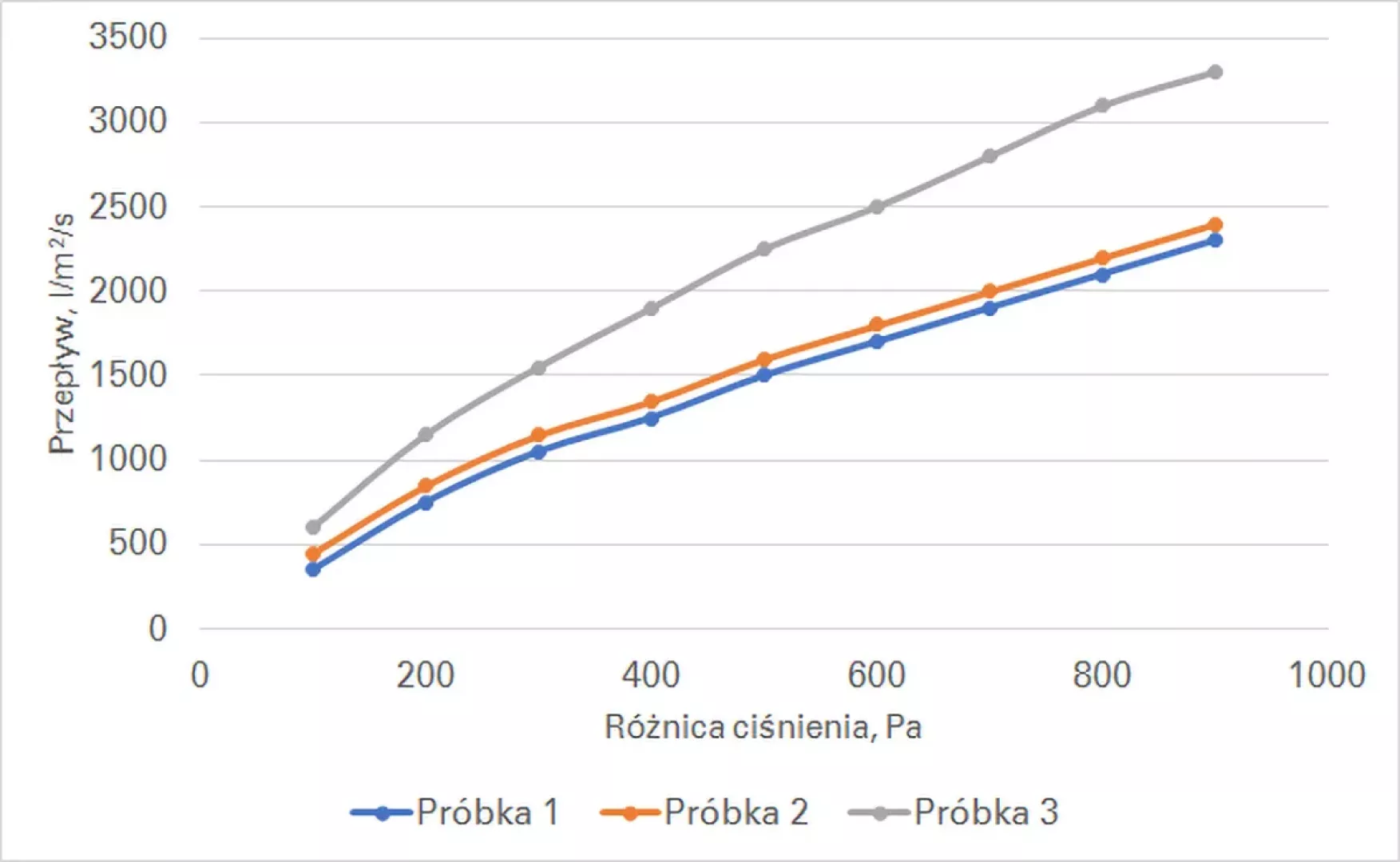 przy stałym spadku ciśnienia na tkaninie odpowiadającym