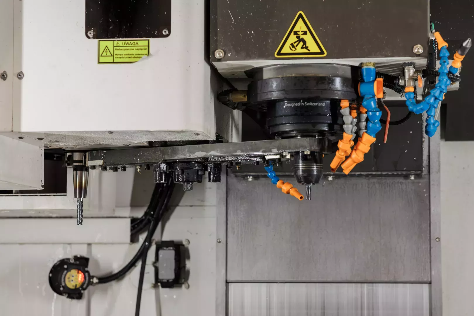 Wspornik został wytworzony na trzyosiowej frezarce CNC Mikron VCE-800 Pro, wyposażonej we wrzeciono HSK-63A osiągające maksymalną prędkość 16 000 obr./min. Materiałem zastosowanym do produkcji była stal 1.4435 (X2CrNiMo18-14-3 wg DIN, odpowiednik 316L wg ANSI), czyli wysokostopowa austenityczna stal nierdzewna zawierająca 18% chromu, 13% niklu, 3% molibdenu i 2% manganu. Ze względu na swoje właściwości antykorozyjne jest szeroko stosowana w przemyśle chemicznym, spożywczym, farmaceutycznym i medycznym. Jednocześnie trudniej poddaje się obróbce niż popularna stal 1.4301, co wymaga starannego doboru narzędzi, parametrów oraz odpowiedniej strategii frezowania. Dodatkowym problemem są naprężenia wewnętrzne materiału, które mogą prowadzić do odkształceń zarówno podczas obróbki, jak i po jej zakończeniu. Aby je zminimalizować, najpierw usuwa się tylko część naddatku, wyrównując grubość półfabrykatu, a dopiero później wykonuje operacje wykańczające. Zwiększona liczba zamocowań wydłuża proces, ale jest niezbędna przy wysokich wymaganiach dokładności.
