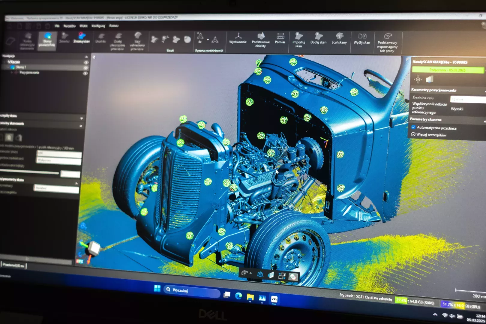 Mieliśmy przyjemność zrealizować wyjątkowy projekt- pełne skanowanie 3D legendarnego Dodge Sedana z 1937 roku. Do pomiarów wykorzystaliśmy HandySCAN MAX | ELITE - skaner o wysokiej rozdzielczości i precyzji, który pozwala odwzorować każdy detal pojazdu. Skan objął całe nadwozie, wnętrze oraz podwozie, co umożliwiło stworzenie kompletnego cyfrowego modelu auta.
