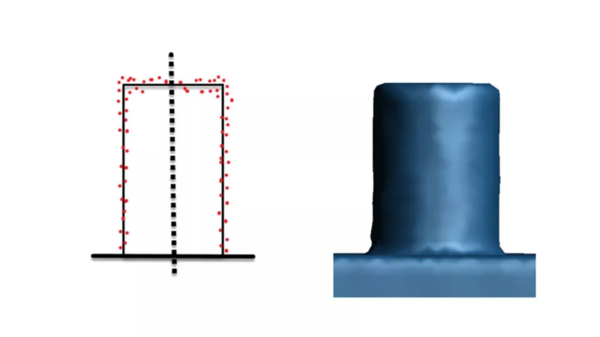 Wysokiej jakości skaner powinien dostarczyć dane pierwotne o niskim poziomie szumów, umożliwiające uzyskanie dobrej wartości cylindryczności oraz wyraźnie widocznych krawędzi cylindra. Niskiej jakości urządzenia często wykazują efekt „grzybka” — cylinder wygląda jak grzyb z pogrubieniem na krawędziach, co jest rezultatem algorytmów wygładzania próbujących kompensować zaszumione dane pierwotne. Skutkiem ubocznym może być zafałszowanie siatki i powierzchni, mimo pozornie „ładnych” danych.