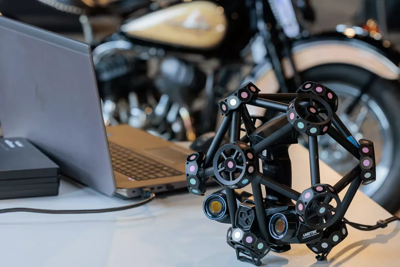 Pan Luka Cickovic, przedstawiciel Creaform zaprezentował firmę i jej innowacyjne produkty wraz z wieloma ciekawymi aplikacjami z obszaru zautomatyzowanych pomiarów z wykorzystaniem skanującej głowicy laserowej MetraSCAN-R wdrożoną w przemyśle lotniczym i motoryzacyjnym. Znalazło się tu m.in. połączenie pomiarów stykowych części na CMM oraz bezstykowych, za pomocą skanującej głowicy laserowej umieszczonej na robocie.