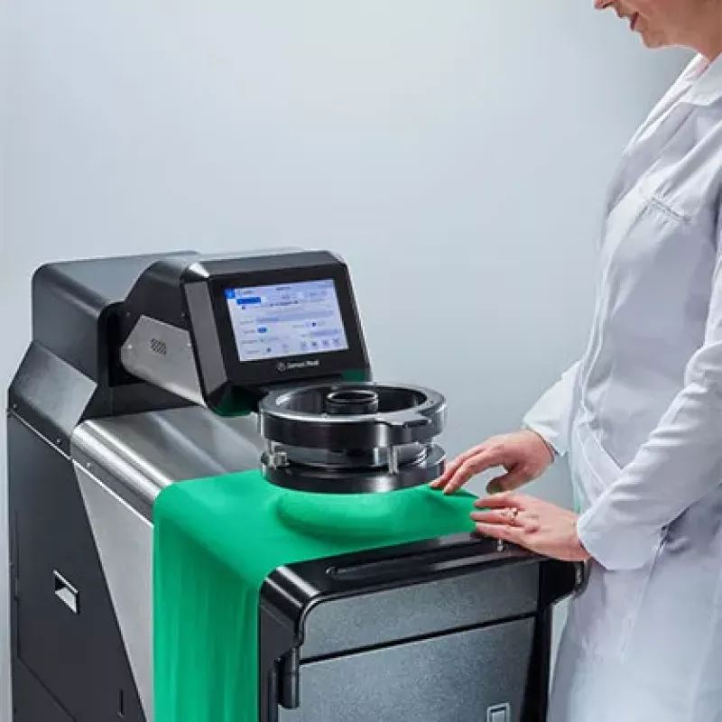 System dotykowego sterowania i oprogramowania James Heal, który prowadzi operatora krok po kroku przez wybór metody, ustawienie parametrów i start testu.