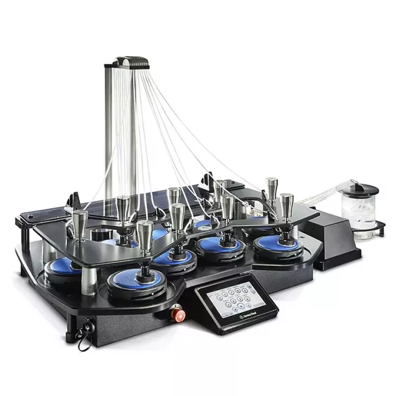 Zespół pomp dozuje ciecz (np. woda dejonizowana, roztwór potu) tak, aby utrzymać stałe nawilżenie próbki przez cały test — bez „wysychania” w połowie przebiegu. Tryby: Dry, Wet, Intermittent, Pre- & Post-tes