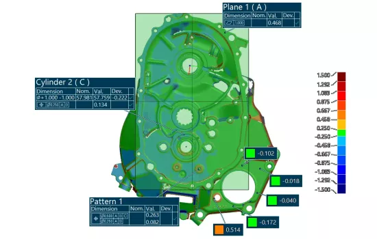 Zaawansowane algorytmy best-fit, bazy wymiarowe i RPS zapewniają stabilne wyrównanie danych pomiarowych do modelu CAD.