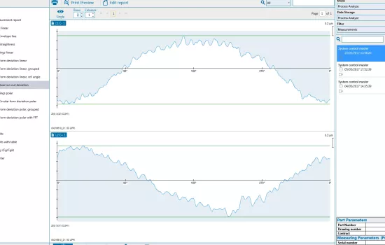 Wbudowany kreator pozwala w kilka minut zbudować plan pomiarowy, prowadząc użytkownika przez wybór i rozmieszczenie charakterystyk na wałku.