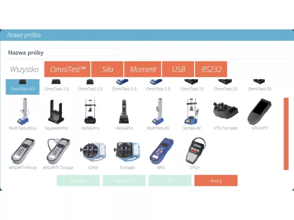 VectorPro Lite pozwala tworzyć sekwencje testowe metodą „drag & drop”, z zapisem historii wersji i opisem profili.
