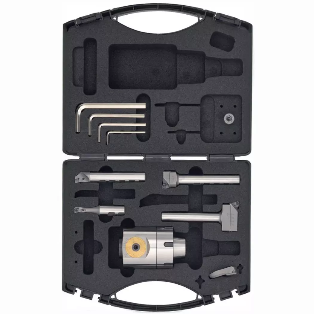 Wszechstronny zestaw wytaczadła precyzyjnego przeznaczony do obróbki otworów w zakresie średnic od 9,75 do 101,1 mm, z możliwością rozszerzenia aż do 152 mm. Wytaczadło można łatwo zamocować w standardowej oprawce ER40, co zapewnia szybkie wdrożenie do pracy i kompatybilność z popularnymi systemami mocowania. Głębokość wytaczania zależna jest do średnic: dla d=9,75 głębokość wytaczania wynosi 30 mm oraz dla d=30 wynosi 82 mm, co czyni zestaw idealnym do szerokiego zakresu zastosowań.