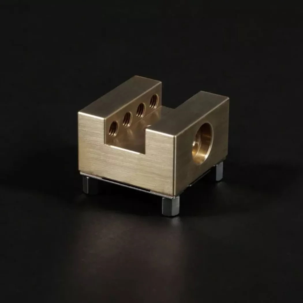 Uchwyt U20 wykonany z mosiądzu jest w pełni kompatybilny z systemem mocowania EROWA ITS – co umożliwia montaż elektrody, następnie obróbkę i dalsze przeniesienie na elektrodrążarkę bez konieczności zmiany uchwytu. Posiada otwór na chip RFID, co wspiera automatyzację i śledzenie procesu narzędzia.
