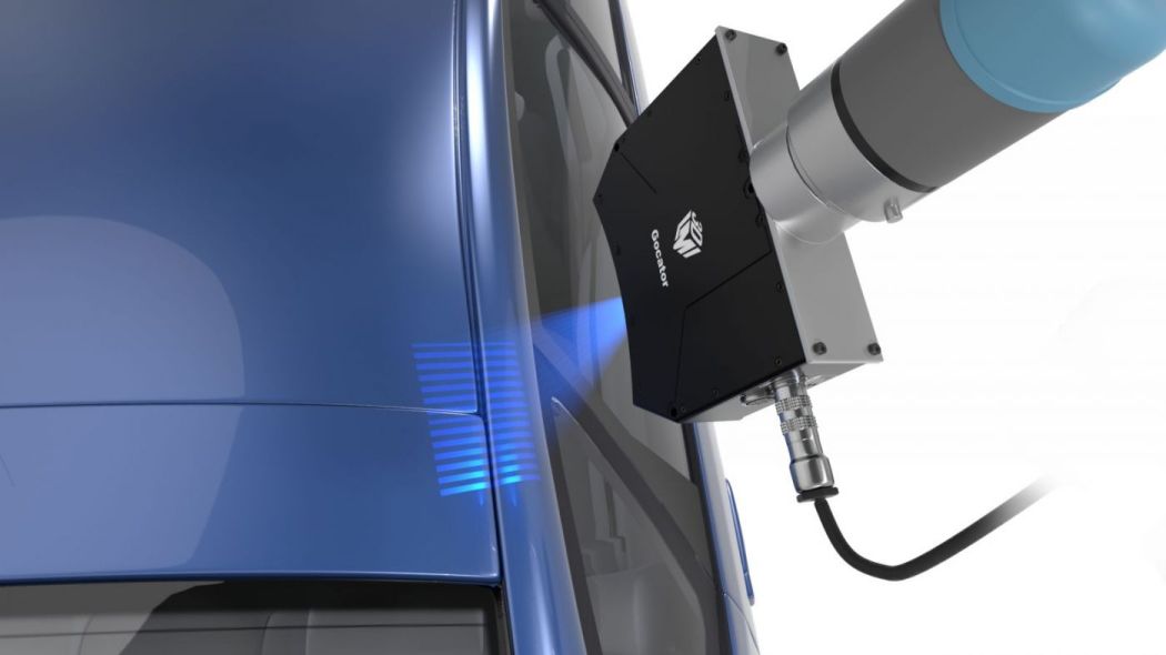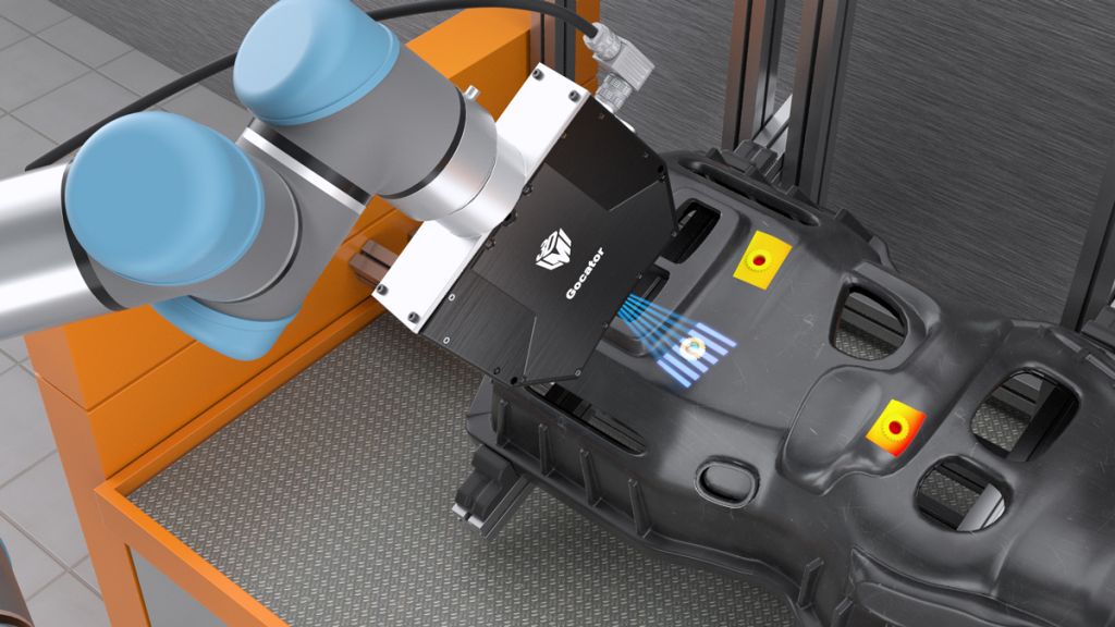 Gocator 3210 zapewnia duże pole widzenia i zakres pomiarowy, co pozwala na przeprowadzenie szybkiej kontroli jakości wielu cech geometrycznych skomplikowanych elementów. Czujnik wykorzystuje technologię światła strukturalnego z niebieskimi diodami LED.