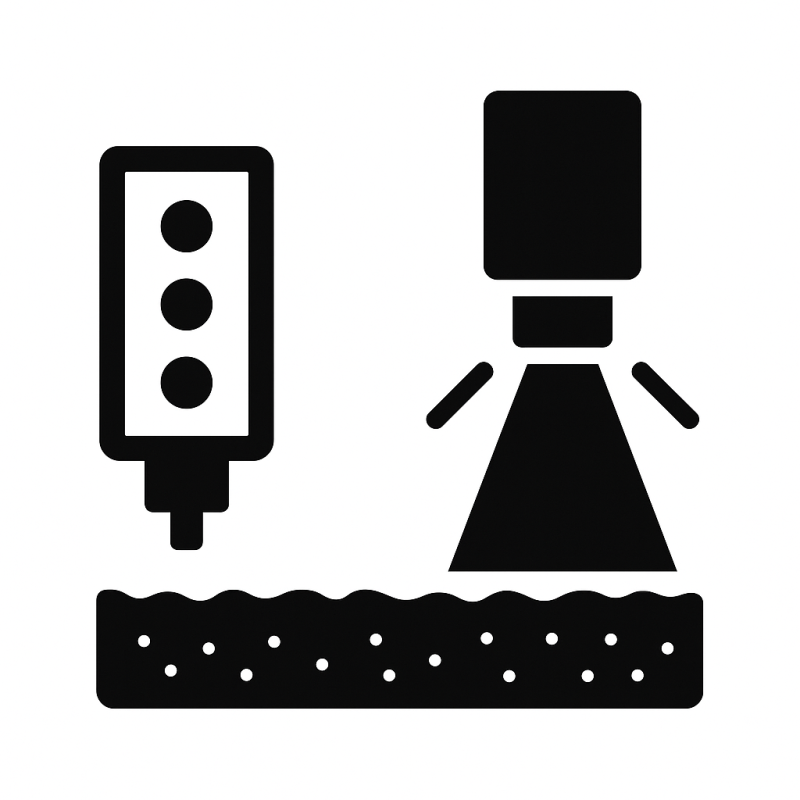 Pomiar odbywa się poprzez krótkie, kontrolowane impulsy światła, które delikatnie nagrzewają powierzchnię, a czujnik rejestruje jej chłodzenie. Metoda fototermiczna sprawdza się tam, gdzie klasyczne metody nie dają rady – również na mokrych, miękkich lub nierównych powierzchniach.