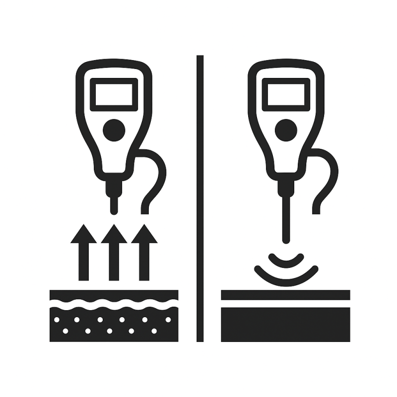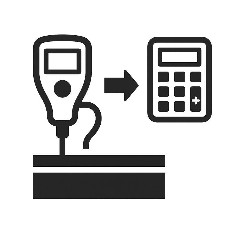 Grubość warstwy lakieru nie jest mierzona bezpośrednio, ale jest automatycznie obliczana przez miernik jako różnica między całkowitą grubością a grubością cynku. Daje to dokładny pomiar warstwy farby, która jest kluczowa dla odporności na zarysowania i warunki atmosferyczne.