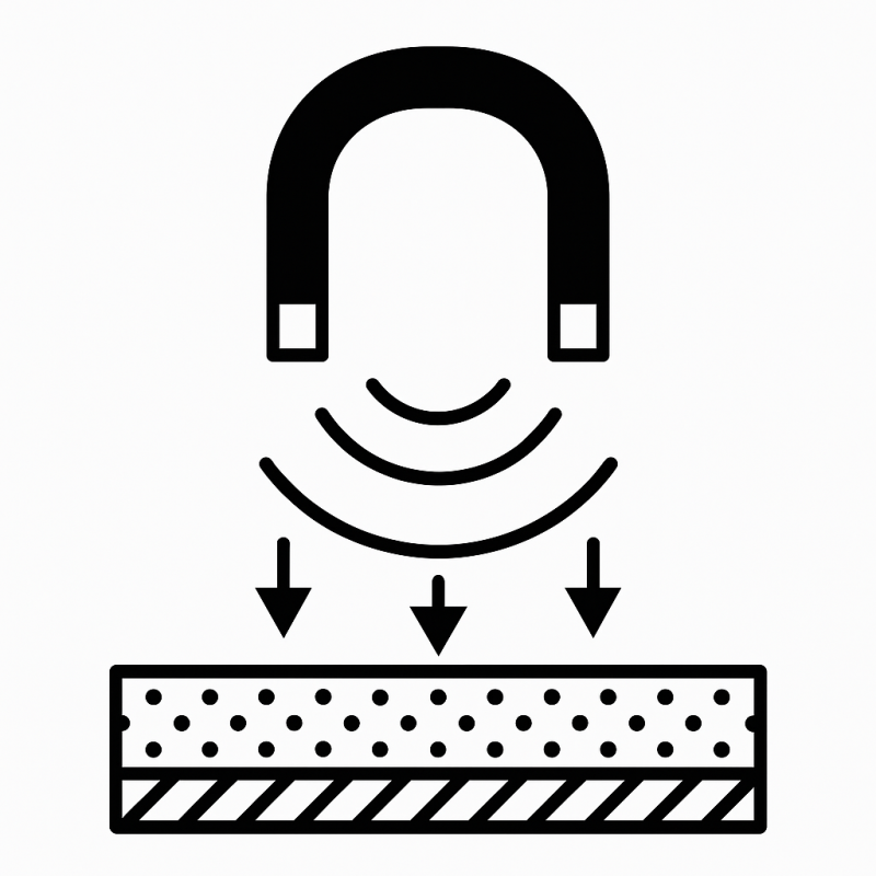 Metoda wykorzystuje zmiany pola magnetycznego powstające przy zbliżeniu sondy do materiału ferromagnetycznego. Zmiana sygnału pozwala precyzyjnie określić grubość niemagnetycznej powłoki na stali. Sprawdza się przy pomiarach ocynków, chromów i farb.