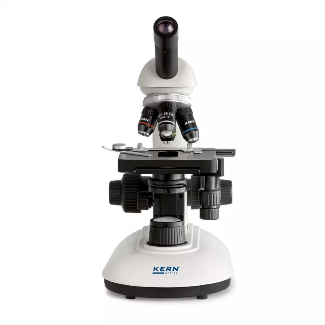 Seria KERN OBE-1 to wytrzymałe mikroskopy edukacyjno-laboratoryjne z optyką achromatyczną, oświetleniem LED 3 W, kondensorem Abbego N.A. 1,25 z przesłoną oraz wygodnym, współosiowym focusem i dużym stolikiem. Dostępne są wersje mono/bino/trino; modele mogą działać z zasilaniem akumulatorowym.