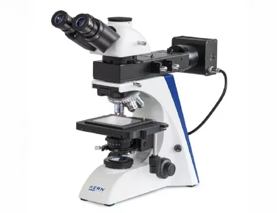 Mikroskop metalograficzny KERN OLM 170 to nowoczesny mikroskop trinokularowy, odwórcony łączący w sobie inspekcję w świetle odbitym (metaloznawstwo)z możliwością pracy z kamerą. Rewolwer na 4 obiektywy pozwala na analizę nawet najmniejszych struktur przy zachowaniu wysokiego kontrastu i szczegółowości. Ergonomiczny stolik umożliwia precyzyjne pozycjonowanie próbki. Wbudowany polaryzator pozwala na obserwację wysoko refleksyjnych materiałów. Układ odwrócony pozwala na nieprecyzyjne przygotowanie próbki.