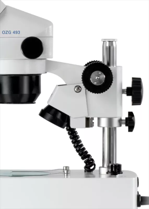 Zastosowana optyka Greenough, trzy niezależne źródła światła (odbite, przechodzące i punktowe) oraz wygodny statyw kolumnowy sprawiają, że mikroskop OZG 493 stanowi kompletne stanowisko do pracy w jubilerstwie i rzemiośle precyzyjnym.