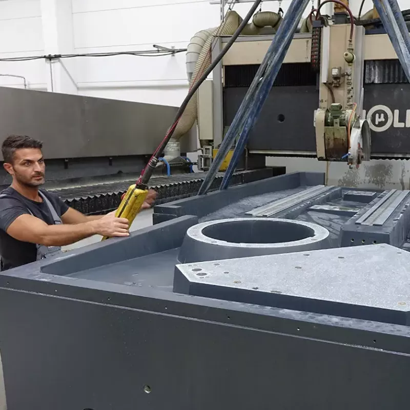 Dostępne są standardowe rozmiary od 250×250 do 3000×2000 mm z odpowiednio dobranymi punktami podparcia i nośnością. Na życzenie dostarczamy podstawy, również z izolacją drgań, a także rowki teowe ze stali, tuleje gwintowane i otwory pasowane. Każda płyta otrzymuje certyfikat kontroli.