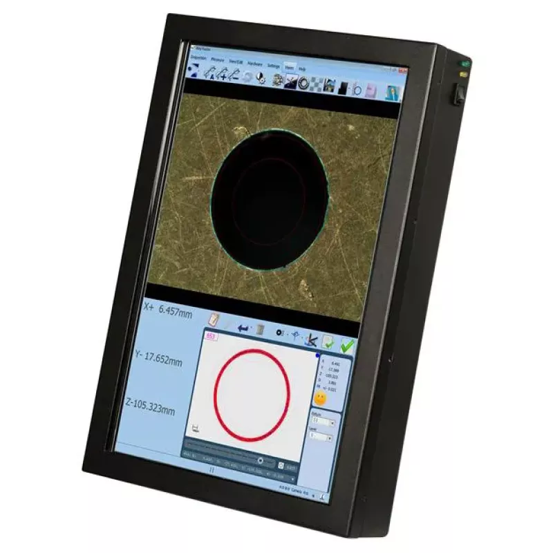 Najwyższa wersja FT2-E łączy dotykowy DRO 2D z optycznym czujnikiem krawędzi. Umożliwia graficzny widok detalu, automatyczne raporty z tolerancjami, SPC i dopasowanie do plików DXF, a także wygodny eksport danych (w tym do Excel