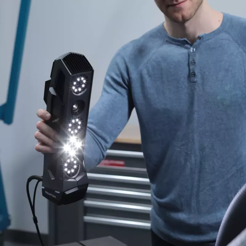 Go!SCAN 3D to mobilny, ręczny skaner 3D stworzony z myślą o maksymalnej łatwości obsługi i pracy w dynamicznych warunkach — w terenie, na hali produkcyjnej czy podczas szybkich inspekcji. Dzięki technologii wielopunktowych kamer oraz pełnokolorowej rejestracji, urządzenie pozwala tworzyć realistyczne modele 3D bez skomplikowanych ustawień i przygotowań. Użytkownicy cenią go za intuicyjne pozycjonowanie, błyskawiczne wychwytywanie geometrii oraz wysoką powtarzalność pomiarów.