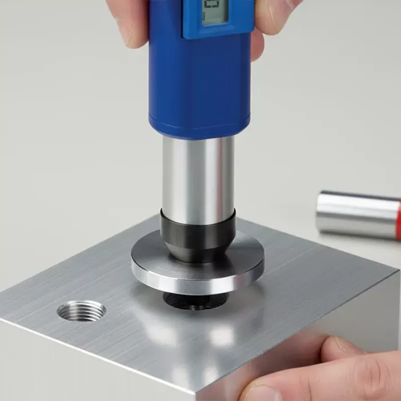 TD-Gauge+ mierzy głębokość i równocześnie sprawdza stan GO/NO-GO. Obsługuje wtyki cylindryczne Ø2–18 mm oraz sprawdziany gwintów M2,5–M18 zgodne z DIN. Skala odczytu jest zawsze widoczna, co przyspiesza kontrolę.