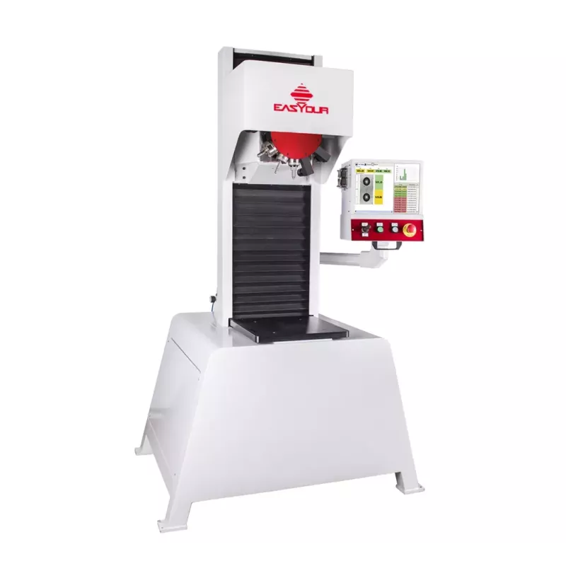 Maszyna wyposażona jest w głowice rewolwerową z wieloma gniazdami (np. 8 pozycji) na wgłębniki, obiektywy optyczne lub narzędzie do frezowania powierzchni próbki i znakowania. Pozwala to na automatyczną zmianę narzędzia w trakcie testu, bez przestawiania maszyny – co eliminuje przestoje i odciąża operatora.