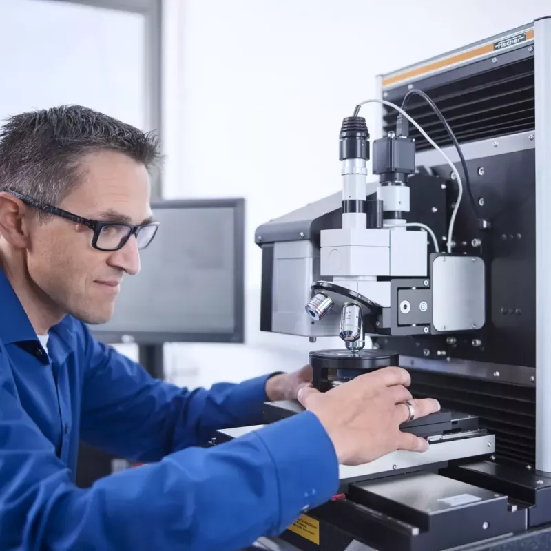 Urządzenie wyposażone jest w precyzyjny stolik XY, który można zaprogramować dla seryjnych pomiarów. Pozwala na automatyzację pomiarów wielu próbek, co znacznie zwiększa wydajność pracy.