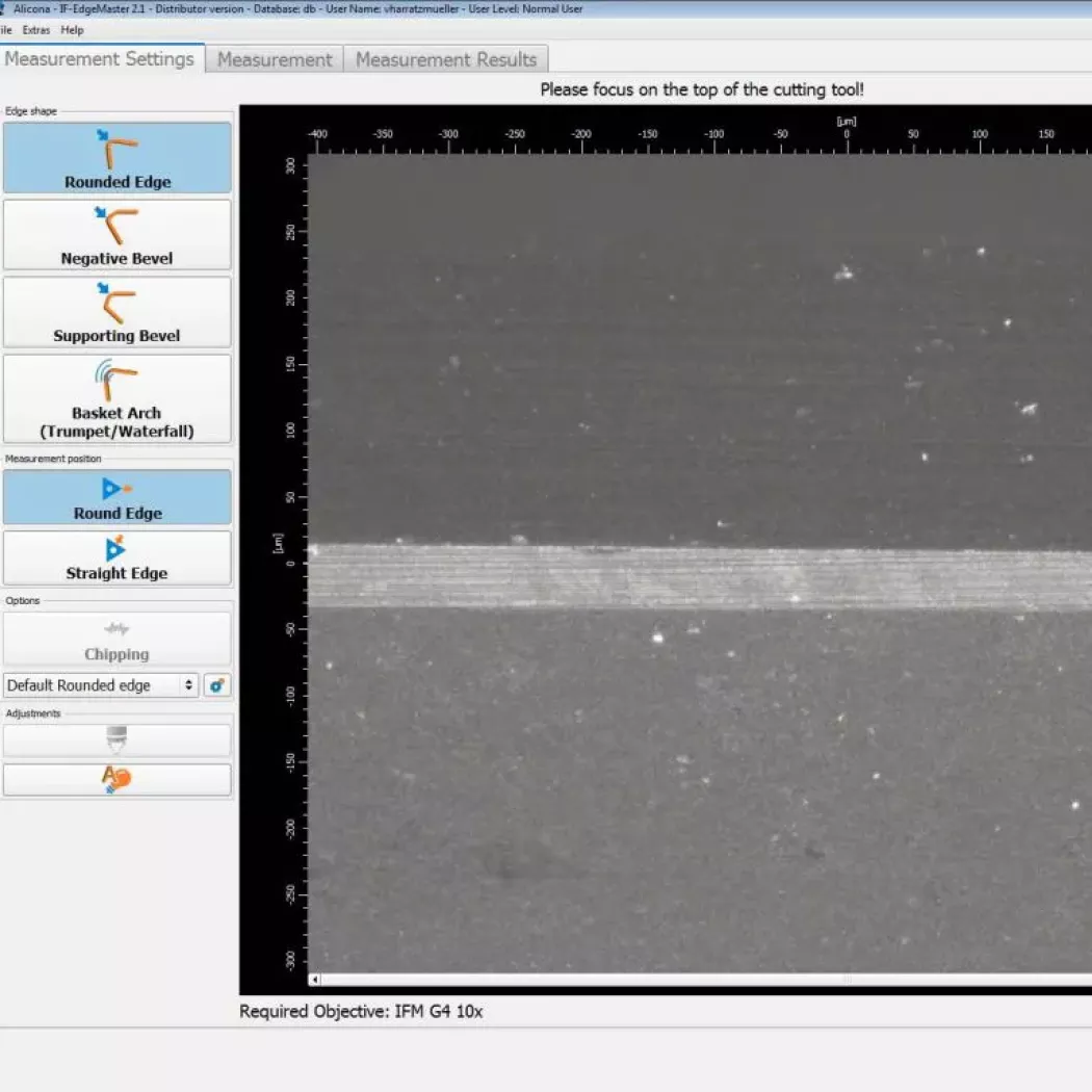 Prowadzimy pomiary mikrogeometrii narzędzi skrawających wykorzystując w tym celu mikroskopy różnicowania ogniskowego firmy Alicona. Wysoka rozdzielczość i powiększenia wraz z odpowiednią sztywnością konstrukcji umożliwiają wiarygodny pomiar nawet bardzo małych promieni np. zaokrąglenia naroża, wyszczerbień na krawędzi skrawającej, a także topografii powierzchni np. rowka wiórowego.