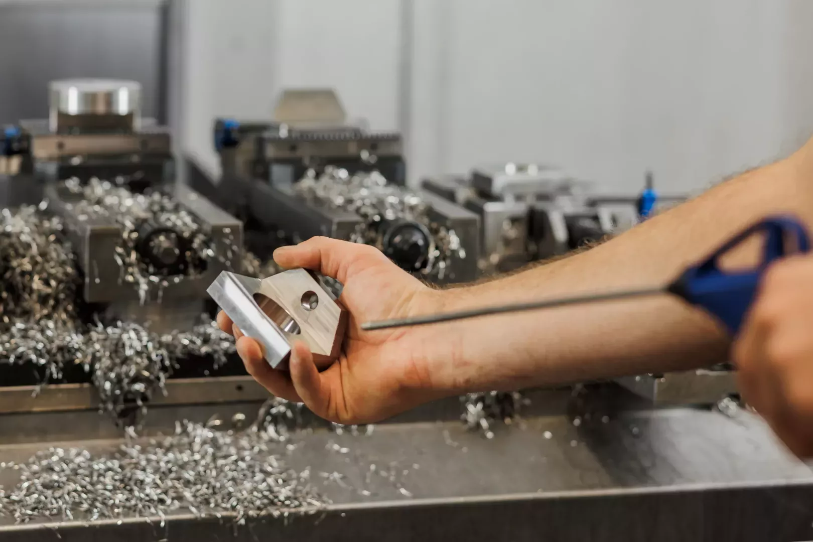 Dzięki przerwanym krawędziom skrawającym wióry były krótsze, łatwiejsze do usunięcia i mniej podatne na powtórne cięcie, co korzystnie wpłynęło na żywotność narzędzia i ergonomię pracy operatora. Następnie wykonano ścieżkę kompensacyjną w celu wyrównania naddatku i skorygowania ewentualnego ugięcia narzędzia.
