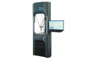 Ponadto dla celów metrologicznych wymagane jest zapewnienie we wnętrzu odpowiednio stabilnych warunków termicznych. Wygląd takiego tomografu wraz z robotem podającym i odbierającym mierzone przedmioty pokazano na rys. 14. Koboty i roboty (jak ten przedstawiony na rys. 14) stają się w Metrologii 4.0 codziennością. Ich wykorzystanie pozwala coraz bardziej uniezależnić się od człowieka, jako niestety najbardziej nieprzewidywalnego elementu procesu pomiarowego. Operator jest także z punktu widzenia zjawisk cieplnych bardzo istotnym elementem wpływającym na niepewność pomiaru. To również sprawia, że przyszłość systemów pomiarowych kojarzona jest z rosnącą automatyzacją.