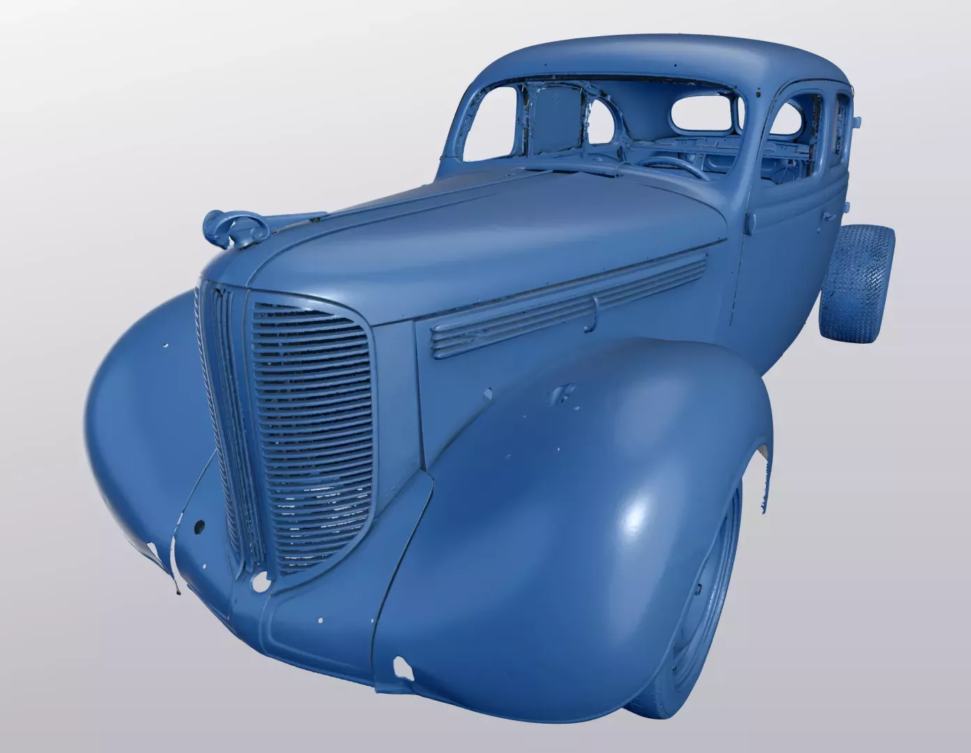 Klient zwrócił się z prośbą o wykonanie pełnego skanu 3D pojazdu Dodge Sedan z 1937 roku. Celem było przygotowanie kompletnej wizualizacji 3D dla inwestora oraz stworzenie materiału prezentującego aktualny stan auta. Dzięki skanowaniu w kilku konfiguracjach – m.in. z założonymi i zdjętymi pokrywami silnika i bagażnika – możliwe stało się stworzenie realistycznej wizualizacji w wielu wersjach.