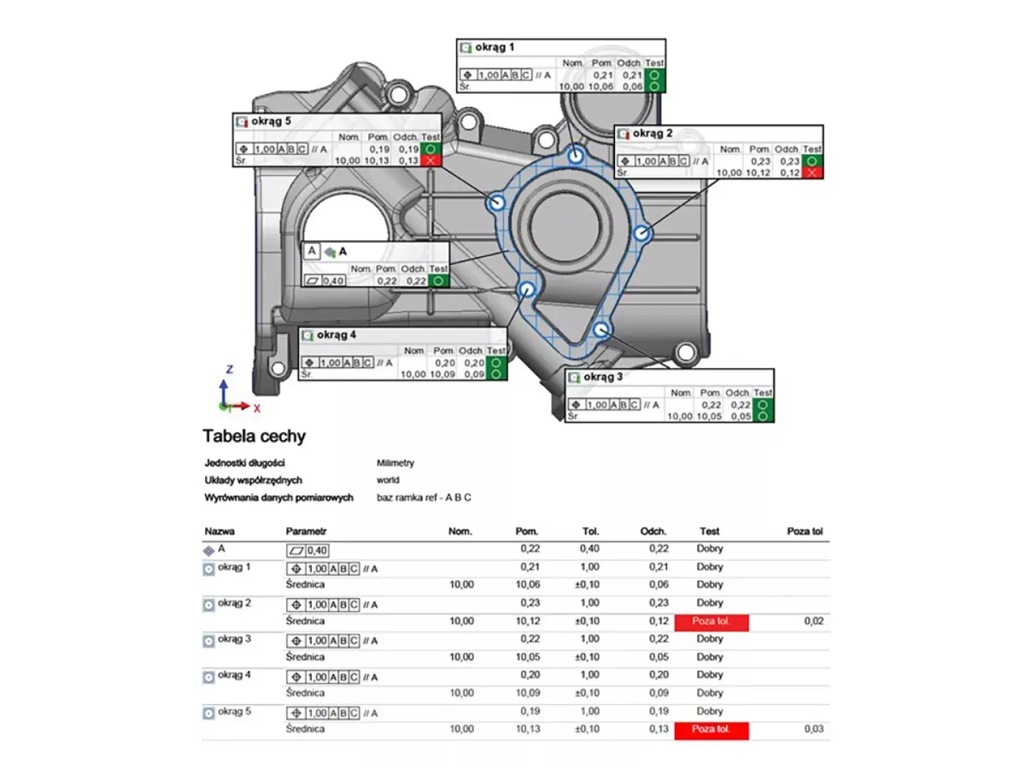 Przekazane raporty pomiarowe są zawsze przejrzyste, czytelne i zgodne z wymaganiami przekazanymi przez klienta. Generowane są one w postaci plików PDF lub .xls/.csv. Dodatkowo na życzenie klienta możliwe jest przekazanie całego programu pomiarowego, który można otworzyć w interaktywnej przeglądarce wyników. Wszystkie pomiary można przeglądać w widoku 3D co pozwala na jeszcze bardziej dogłębną analizę wyników pomiarowych.