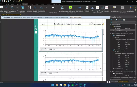 Wyniki z profilometru można bezpośrednio przenieść do dokumentacji jakościowej i porównać z wymaganiami rysunkowymi.