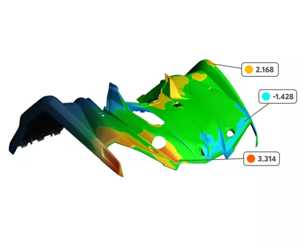 Zaawansowane algorytmy best-fit, bazy wymiarowe i RPS zapewniają stabilne wyrównanie danych pomiarowych do modelu CAD.