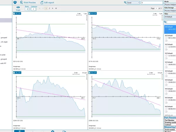 Wbudowany kreator pozwala w kilka minut zbudować plan pomiarowy, prowadząc użytkownika przez wybór i rozmieszczenie charakterystyk na wałku.