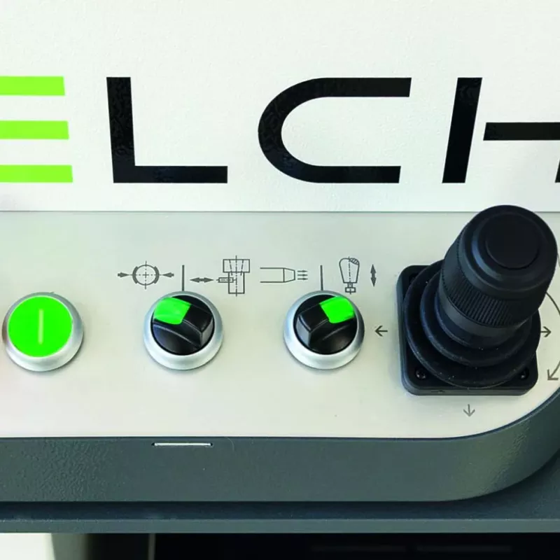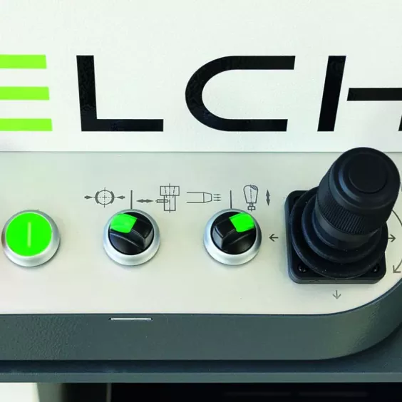 Połączenie szybkich przesuwów pneumatycznych i powolnych ruchów do ustawień końcowych daje pełną kontrolę nad pomiarem.