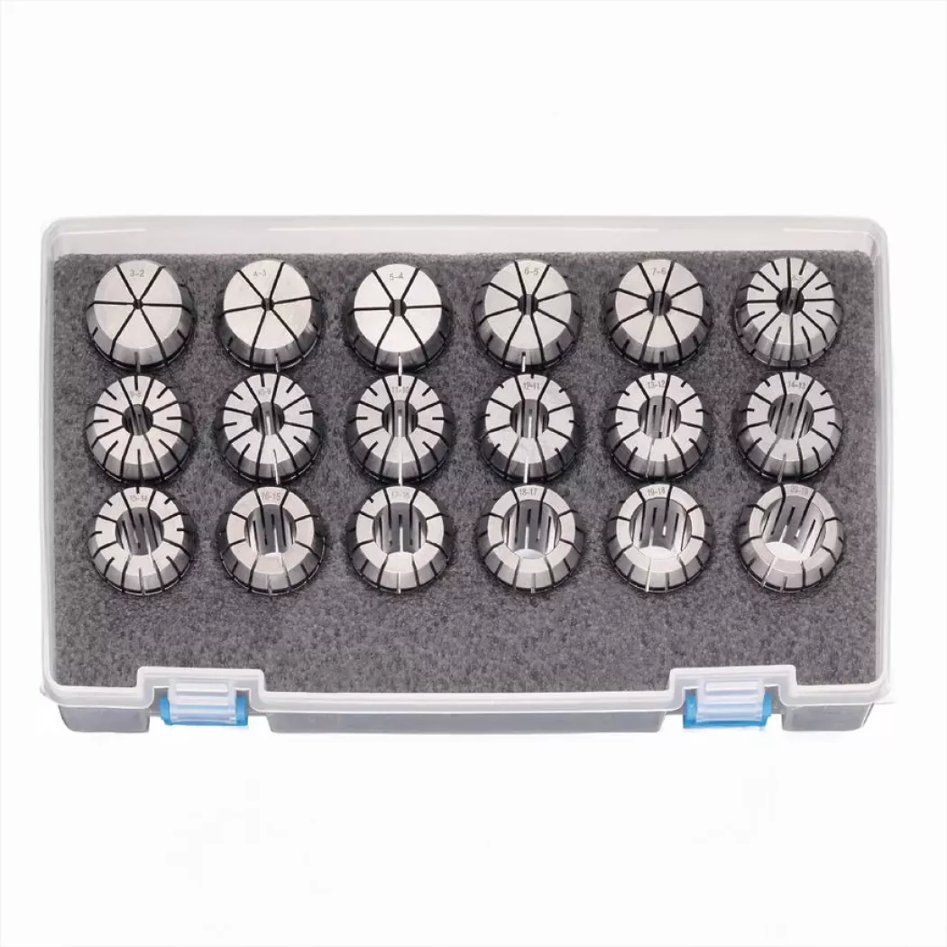 Zestaw tulejek zaciskowych ER-32 to wysokiej klasy komplet elementów mocujących narzędzia skrawające w systemach CNC i frezarkacho o zakresie mocowania od 2,5 do 20 mm, z przyrostem co 1 mm, to idealne rozwiązanie do szerokiego wachlarza zastosowań frezarskich i wiertarskich. Każda z 18 tulejek zapewnia koncentryczność ≤ 10 µm w całym zakresie mocowania, co gwarantuje stabilność i wysoką dokładność pracy narzędzi.