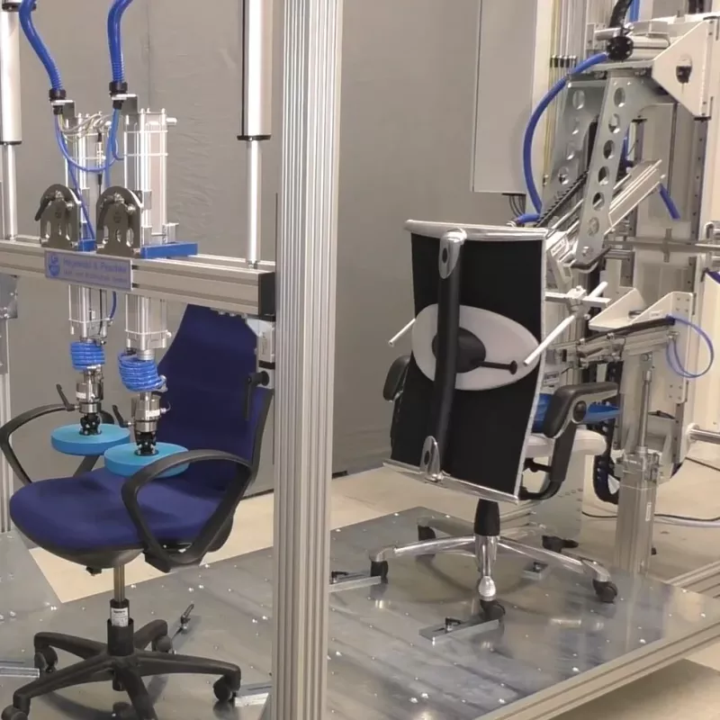 Urządzenie umożliwia testowanie zgodnie z normami EN 527-3, EN 1730, BIFMA X5.5 i innymi. Każdy test może być zautomatyzowany i odtworzony wielokrotnie z tą samą dokładnością.