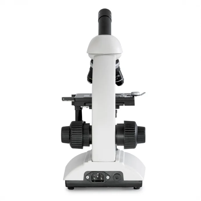 Układ optyczny oparty na achromatycznych obiektywach (4×, 10×, 40×, 100× olejowy) zapewnia ostre i kontrastowe obrazy w całym polu widzenia. Obudowa wykonana z odlewu aluminiowego gwarantuje stabilność nawet przy długiej pracy i powiększeniach 1000×.