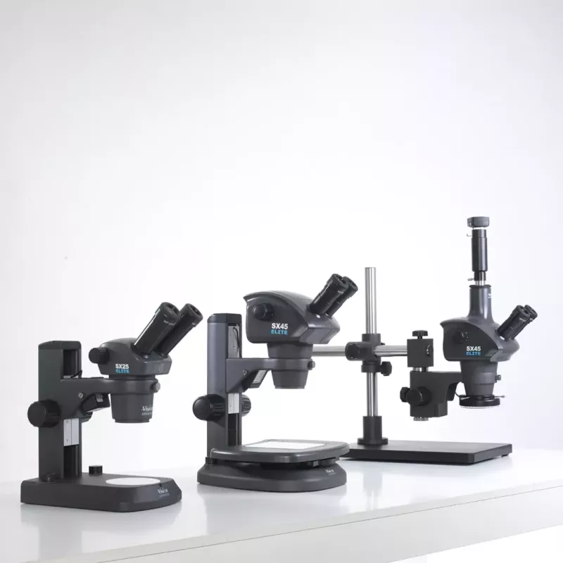 Mikroskopy stereoskopowe serii SX marki Vision Engineering to rozwiązania zaprojektowane z myślą o dokładnej i komfortowej inspekcji elementów w przemyśle i laboratoriach. Dzięki wysokiej jakości optyce, indeksowanym powiększeniom i regulowanemu oświetleniu LED mikroskopy SX zapewniają ostry, kontrastowy obraz w trzech wymiarach, umożliwiając łatwą identyfikację nawet drobnych defektów. Seria SX jest modularna – pozwala dobrać konfigurację statywu, głowicy i obiektywów do konkretnego zastosowania. System można również rozszerzyć o kamerę do wyświetlania obrazu na ekranie i analizę w oprogramowaniu Pixel-Fox.