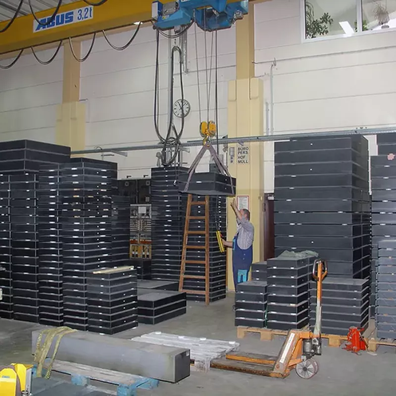 Dostępne są standardowe rozmiary od 250×250 do 3000×2000 mm z odpowiednio dobranymi punktami podparcia i nośnością. Na życzenie dostarczamy podstawy, również z izolacją drgań, a także rowki teowe ze stali, tuleje gwintowane i otwory pasowane. Każda płyta otrzymuje certyfikat kontroli.