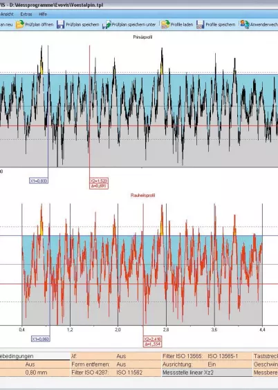 System współpracuje z najnowszym oprogramowaniem Evovis, zgodnym z aktualnymi normami DIN EN ISO 21920 do pomiaru chropowatości oraz umożliwiającym pełną analizę konturu zmierzonej części. Dodatkowo zapewnia raportowanie, prowadzenie wewnętrznej statystyki oraz eksport danych w formatach ASCII oraz Q-DAS / AQDEF do systemów SPC.