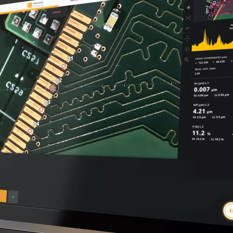 XDV® 850 mierzy powłoki tak cienkie, jak 2 nm (np. warstwy Au na lead frame’ach), co umożliwia precyzyjną kontrolę jakości w mikroelektronice i półprzewodnikach. Urządzenie jest zgodne z normami IPC dotyczącymi pomiaru powłok ochronnych.