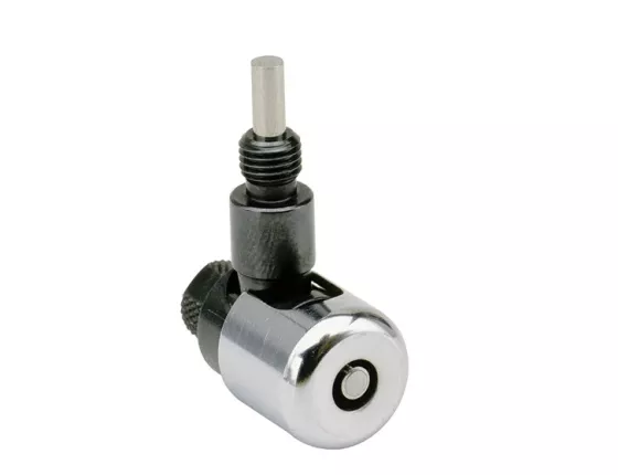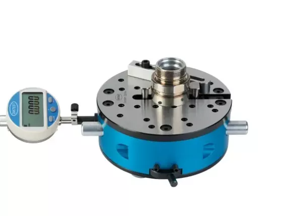 AMG jest samocentrujący, ma powtarzalność do 1 µm i współpracuje z wskaźnikami analogowymi/cyfrowymi; łatwo go wyzerować na tarczach.