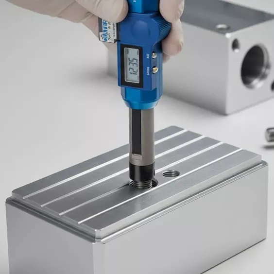 DIATEST TD-Gauge+ łączy sprawdzanie GO/NO-GO z jednoczesnym pomiarem głębokości w otworach gładkich i gwintowanych.