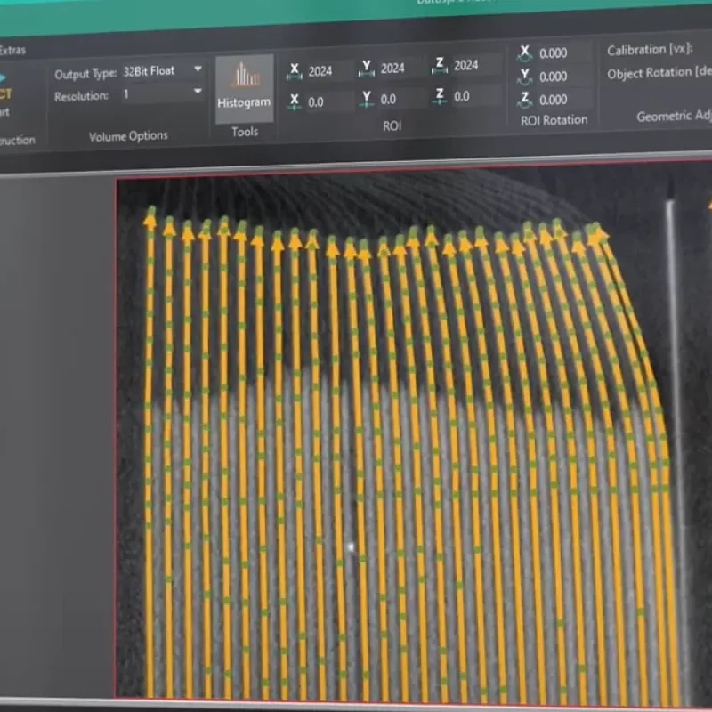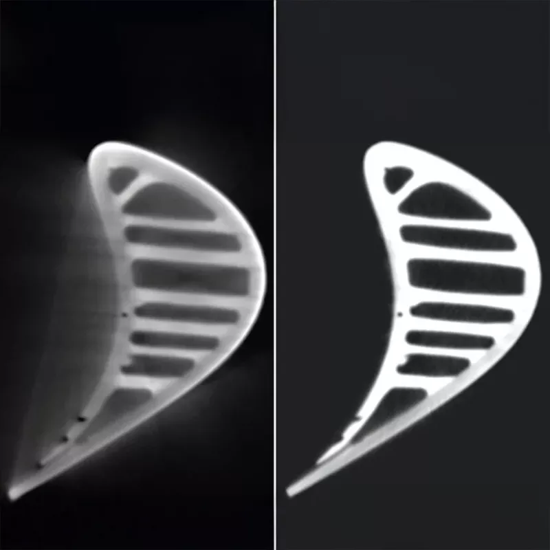 Opatentowana technologia redukcji artefaktów rozpraszania się promieniowania podczas procesu skanowania, która zapewnia najwyższą jakość danych dla elementów o skompilowanej geometrii oraz wykonanych z gęstych materiałów. Cały proces oparty jest na rozwiązaniu sprzętowym, co zapewnia brak ingerencji w dane na poziomie oprogramowania.