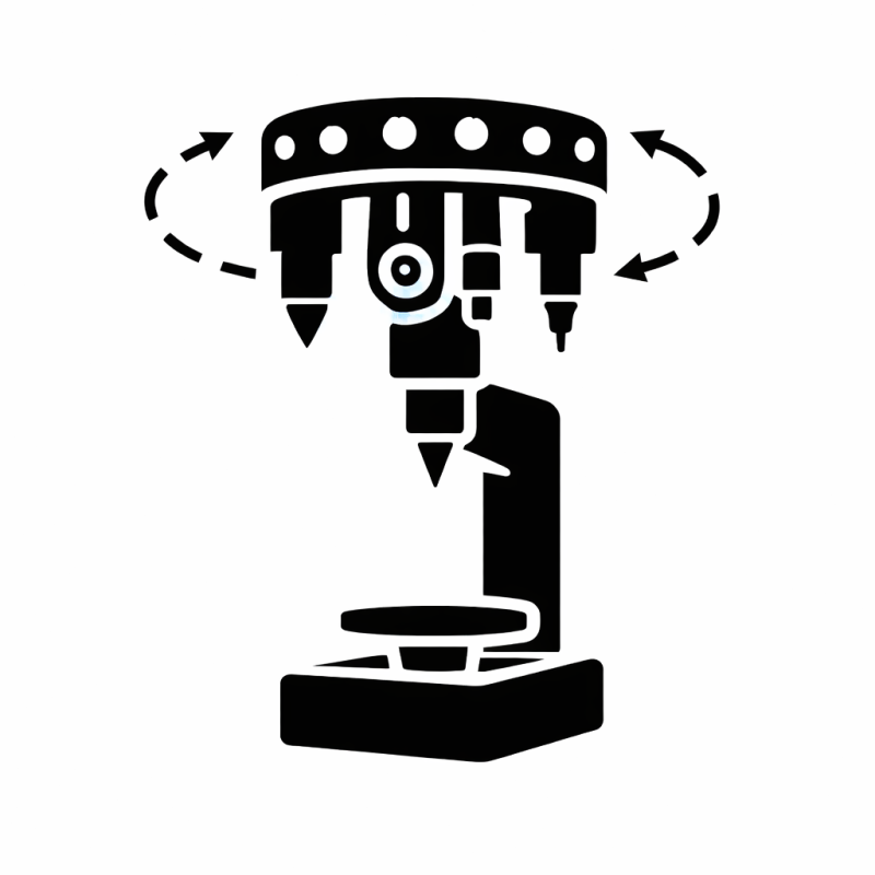 Maszyna wyposażona jest w głowice rewolwerową z wieloma gniazdami (np. 8 pozycji) na wgłębniki, obiektywy optyczne lub narzędzie do frezowania powierzchni próbki i znakowania. Pozwala to na automatyczną zmianę narzędzia w trakcie testu, bez przestawiania maszyny – co eliminuje przestoje i odciąża operatora.