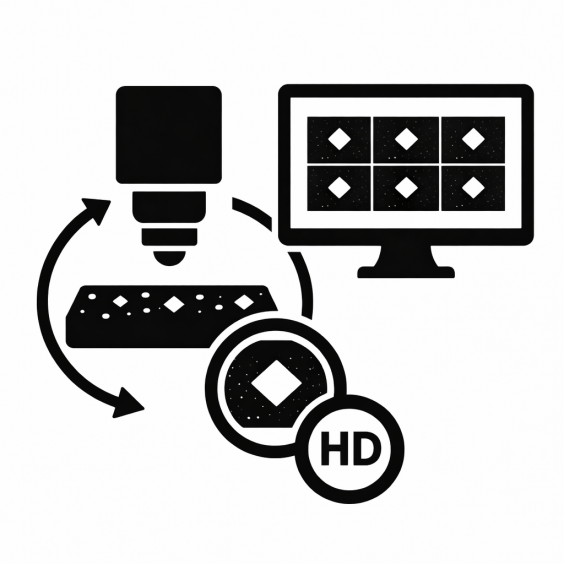 System kamer HD z funkcją łączenia obrazów pozwala na skanowanie całego obszaru próbki w wysokiej rozdzielczości. Panoramiczny widok umożliwia wizualizację rozkładu twardości, kontrolę odcisków i analizę w trybie na żywo. Pełna kontrola procesu i łatwiejsza dokumentacja wyników.
