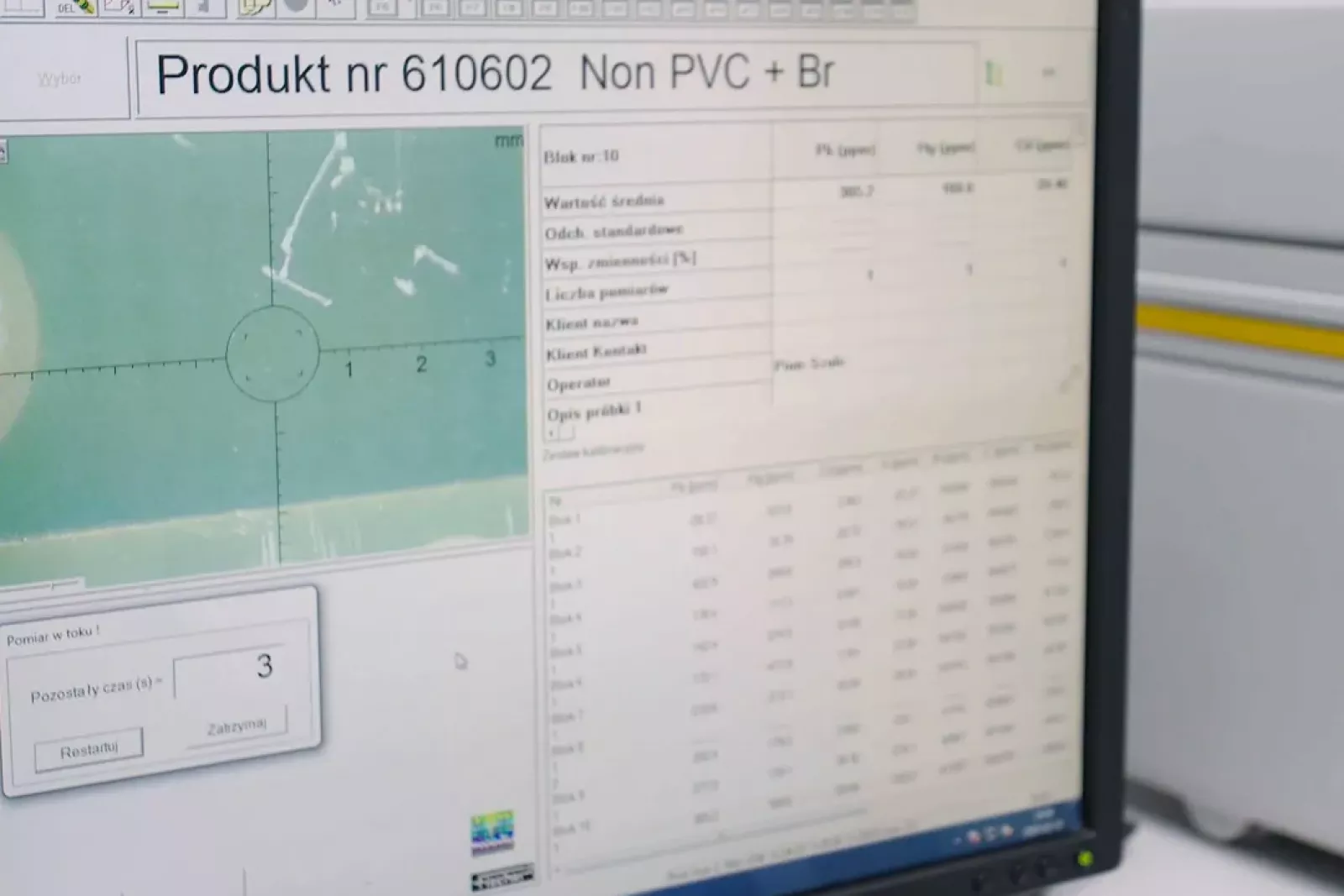 - pomiary na zgodność z dyrektywą RoHS (oznaczanie Pb, Hg, Cd, Cr VI),