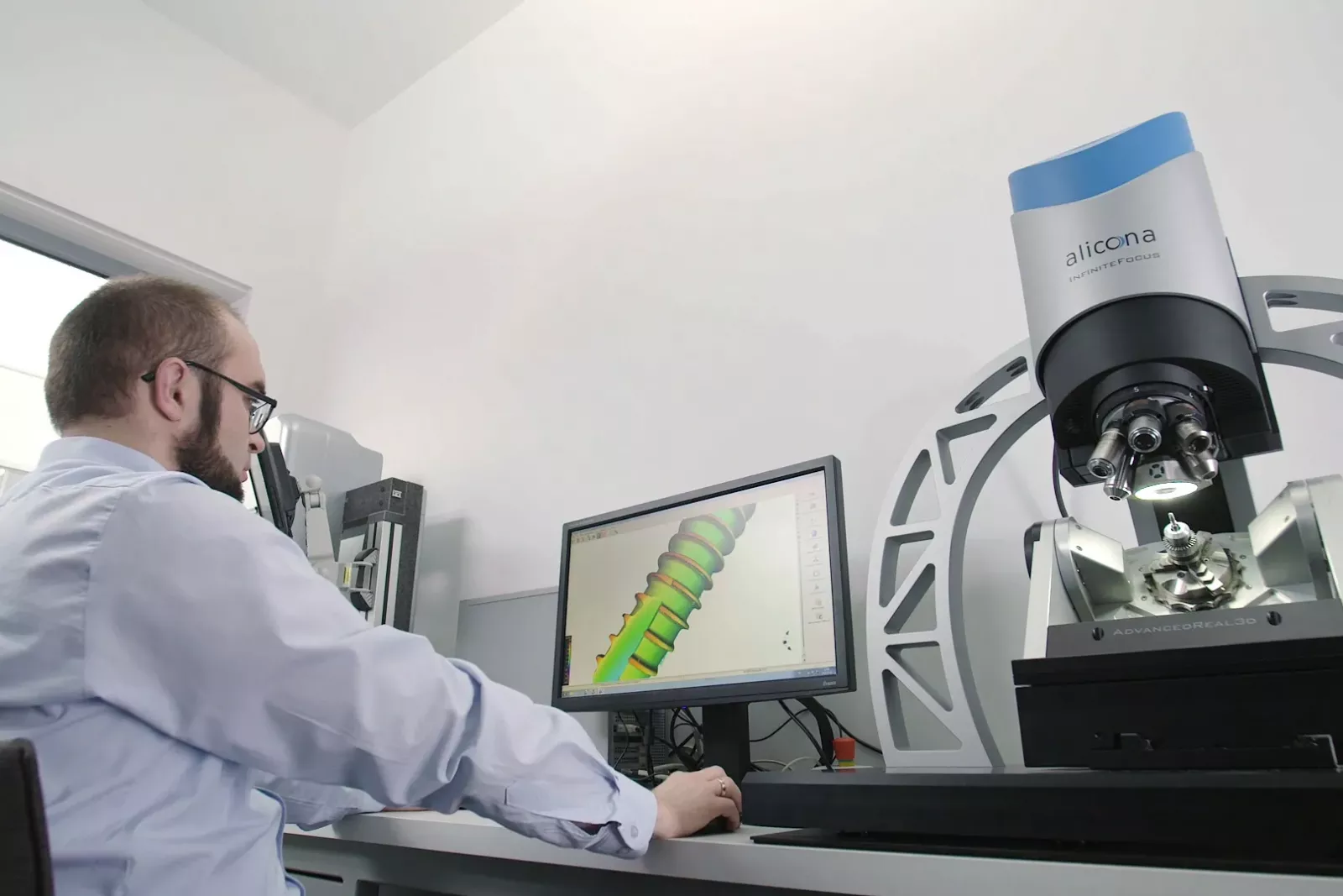 Wysokorozdzielcze pomiary trójwymiarowej struktury powierzchni realizowane są z wykorzystaniem optycznych systemów Bruker Alicona, zapewniających wysoką dokładność i powtarzalność wyników. Zastosowana technologia umożliwia szczegółową analizę mikro- i makrostruktury powierzchni nawet dla elementów o złożonej geometrii.